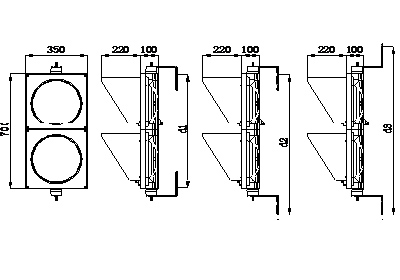 Tên đèn Đèn 2 màu D300 Xanh,  Đỏ  Model No. JD300-3-FM21 Vật liệu làm vỏ Polycarbonate Điện áp làm việc 12/24VDC; 85-265VAC 50HZ/60HZ Nhiệt độ làm việc -40o~+80oC Tuổi thọ >80,000 giờ Chứng chỉ chất lượng Quatest, CE Bảo hành 24 Tháng Đặc điểm kỹ thuật: Ø 300mm Sáng (cd) Bộ phận tập hợp Màu sắc số lượng LED Bước sóng (nm) Góc nhìn Công suất Trái phải Nghiêng ≥400 Quả bóng đỏ đầy đủ Màu đỏ 91 (chiếc) 625 ± 5 30 30 ≤9W ≥600 Màu xanh lá cây đầy đủ bóng màu xanh lá 91 (chiếc) 505 ± 5 30 30 ≤9W Kích thước:
